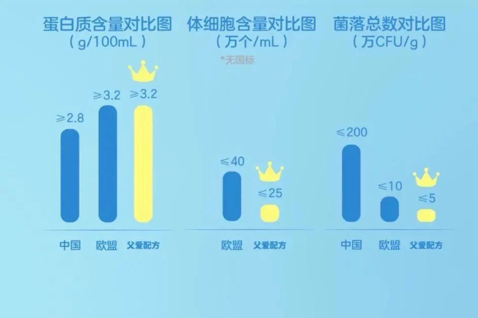 这意味着,全球牧业衡量奶源品质的三大关键性指标中,简爱父爱配方的奶源均达到了欧盟标准,其中体细胞和菌落数指标要求甚至超过了欧盟标准。